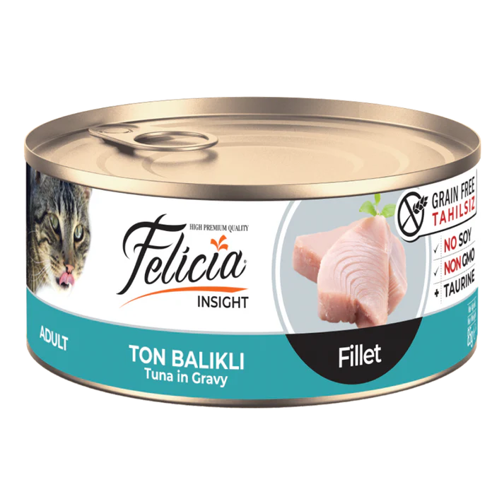 Felicia Tahılsız 85 gr Ton Balık Filetolu Yaş Kedi Maması, veteriner hekimler ve beslenme uzmanları tarafından özel olarak formüle edilmiştir. Dostlarımızın vazgeçilmez yaşam kaynağı olan Taurin desteği, GDO ve soya içermeyen özel formülü ile benzersiz bir tüketim deneyimine hazır olun. Yüksek et oranı ve tahılsız özel içeriği ile beklentilerinizi en iyi şekilde karşılamaya hazırız.