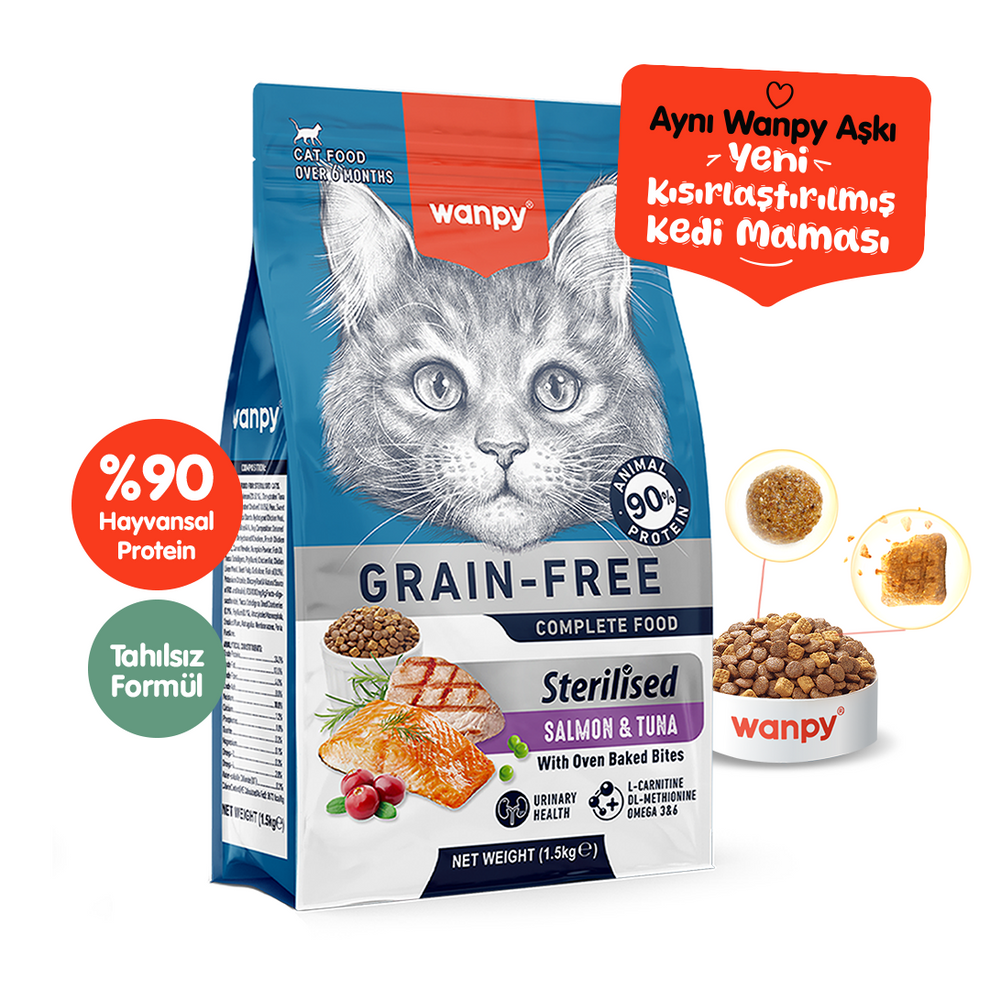 Wanpy Tahılsız Somonlu ve Ton Balıklı Kısırlaştırılmış Kedi Maması